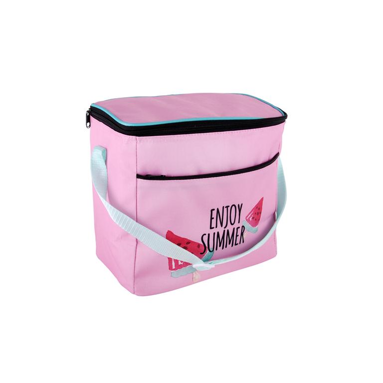 Praktická taška cez rameno, ktorá vďaka vnútornej vrstve z PE materiálu umožňuje skladovať obľúbené jedlá a nápoje v letnom horúcom počasí. Skvelá záležitosť pre letné pikniky, prechádzky lesom alebo k vodou. Chladiaca taška je na zips, objem 8 l, v jemných pastelových farbách.