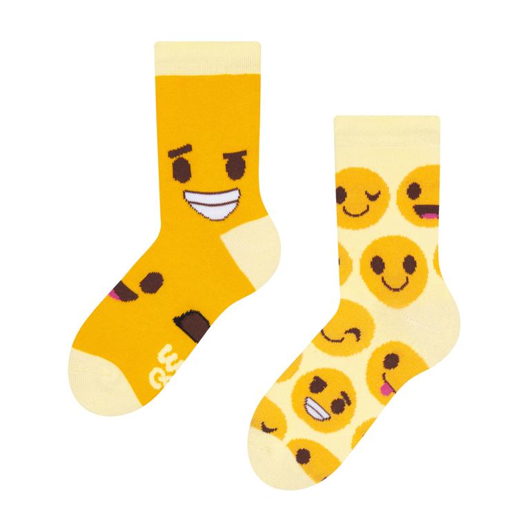 Detské veselé ponožky Dedoles smajlíky, veľkosť 23-26. S veselými ponožkami už nebudete bojovať pri rannom obliekaní. Zaručujeme len veselú zábavu. Okrem toho sa môžete s vašim drobcom zladiť. Mnohé z párov veselých ponožiek majú dospelú aj detskú veľkosť. Materiál: 70% bavlna, 28% polyamid a 2% elastan. Pohodlné nosenie. Ponožky perte pri maximálnej teplote 40 °C. Neodporúča sa: sušenie v bubnovej sušičke, chemické čistenie alebo použitie bielidla.