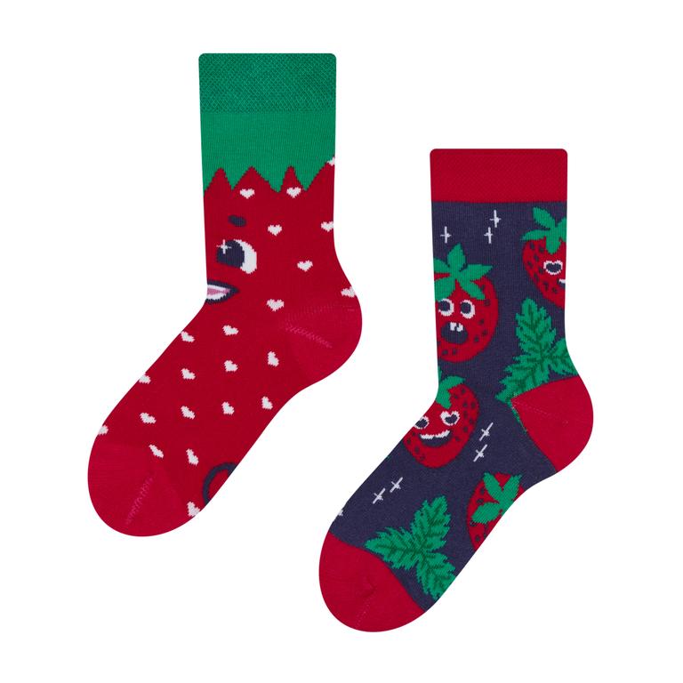 Detské veselé ponožky Dedoles šťastné jahody veľkosť 27-30. Sladké jahôdky sú počas letných dní tým najlepším osviežením. Naše veselé jahôdkové ponožky nerastú len v určitej sezóne, takže ti budú spríjemňovať celý rok. Rozdávaj dobrú náladu s veselými ponožkami Dedoles. Vďaka jedinečnému hravému dizajnu vyjadríte svoje veselé pravé ja. Kvalitná bavlna zabezpečí perfektné pohodlie pre vaše nohy. Vykúzlite sebe a vašim blízkym úsmev na tvári. Materiál: 70% bavlna, 28% polyamid a 2% elastan. Pohodlné nosenie. Maximálna teplota prania 40 °C, neodporúča sa sušenie v bubnovej sušičke, chemické čistenie alebo použitie bielidla.