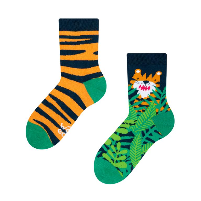 Detské veselé ponožky Dedoles tiger, veľkosť 27-30. S veselými ponožkami už nebudete bojovať pri rannom obliekaní. Zaručujeme len veselú zábavu. Okrem toho sa môžete s vašim drobcom zladiť. Mnohé z párov veselých ponožiek majú dospelú aj detskú veľkosť. Materiál: 78% bavlna, 20% polyamid a 2% elastan. Pohodlné nosenie. Maximálna teplota prania 40 °C, neodporúča sa sušenie v bubnovej sušičke, chemické čistenie alebo použitie bielidla.