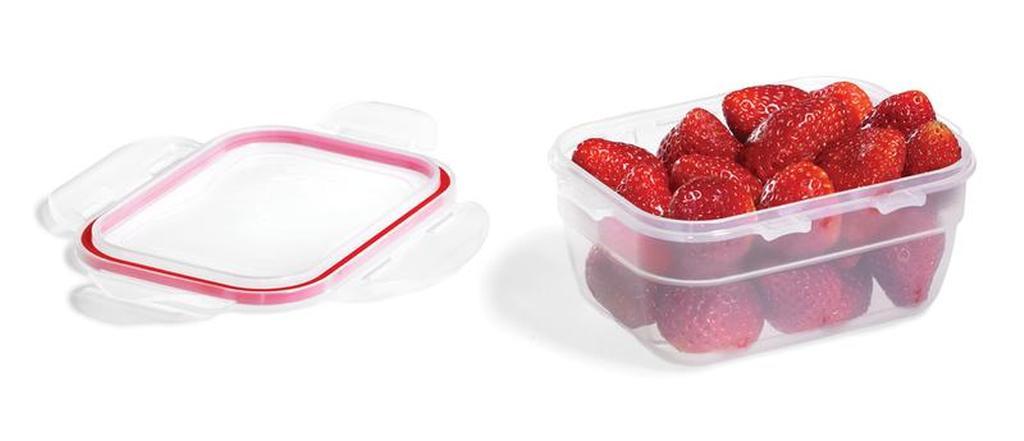 Obdĺžnikové dózy Lock & Lock "Easy Match" sú bezpečné a funkčné nádoby vyrobené z kvalitného plastu, ktorý je trvanlivý a odoláva vysokým teplotám. Tieto dózy sú 100% vzduchotesné a tým zabezpečujú dlhodobú čerstvosť uchovávaných potravín a sú vynikajúce aj z hľadiska uchovania vône (arómy). Štyri pohyblivé "klipy" zaisťujúce kryt sú odolné proti opotrebeniu. Nádoby majú špeciálne upravené vonkajšie dno tak, aby sa mohli bezpečne stavať na seba a nešmýkali sa. Dózy Lock & Lock možno použiť v chladničke, v mikrovlnke, v mrazáku aj v umývačke riadu. Dózy Lock & Lock prešli prísnymi hygienickými skúškami a zodpovedajú najprísnejším predpisom. Objem 550 ml. Farba číra, červená.
