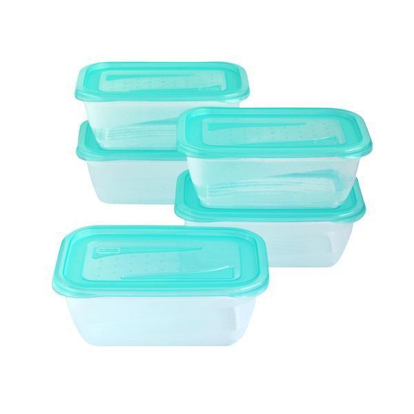 Praktická sada 5 ks dóz na potraviny Fresh & Freeze s vekom, objem 0,5 l. Svieži moderný dizajn, jednoduché otváranie. Vhodné na uchovávanie potravín, na obedy, desiate a pod. Vďaka týmto dózam uchováte potraviny dlhšie čerstvé. Vhodné tiež do mrazničky. Rozmery 15,5 x 10,5 x 6 cm. Farba číra s modrým viečkom.