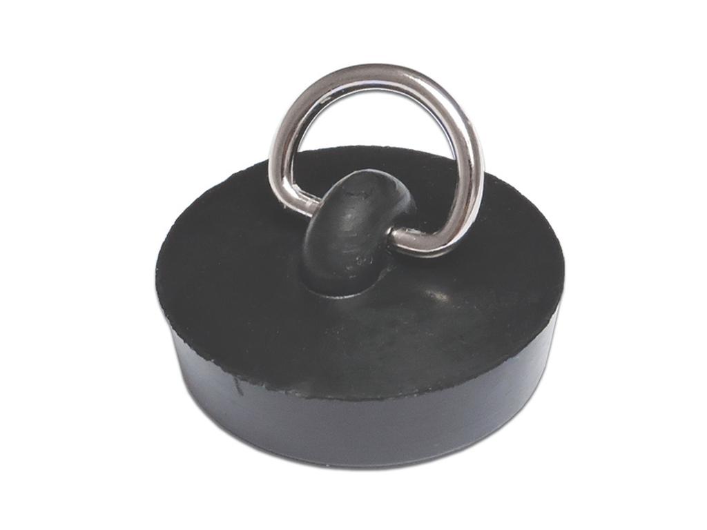 Gumová zátka v čiernej farbe s kovovým očkom. Tento tvar je ideálny pre ľahšiu manipuláciu pri pretlaku vody. Zátka je vhodná predovšetkým k uzavretiu odtoku na umývadlách, kúpacích vaniach a drezov. Priemer 39 mm.