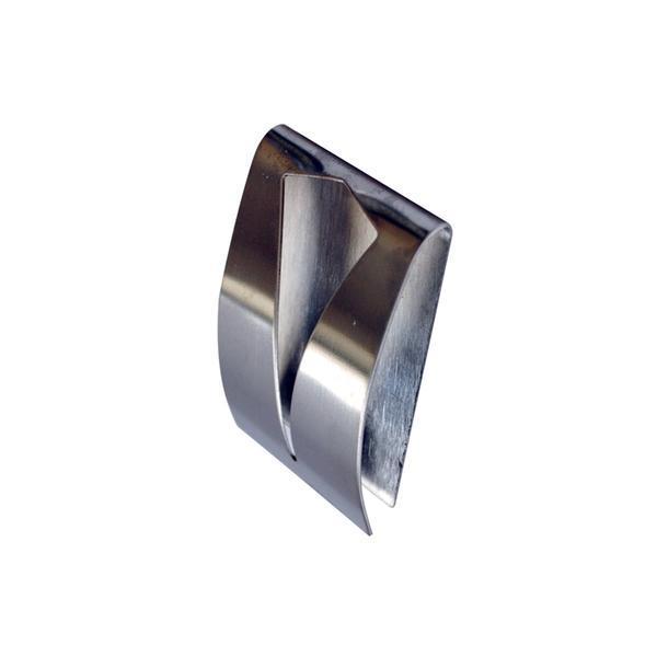 Nerezový háčik do kuchyne, vhodný na zavesenie utierky. Rozmery 5 x 8 cm.
