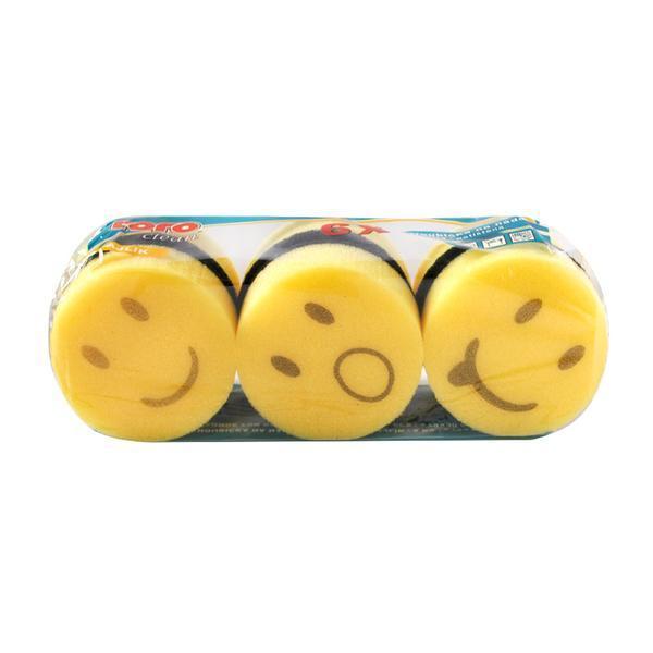 Hubka na riad má veľmi účinnú pevnú brúsnu vrstvu odolnú proti opotrebeniu. Okrúhla veselá potlač so smajlíkmi. Balenie obsahuje 6 ks v žlto-čiernej farbe. Rozmery - 7,9 x 3 cm.