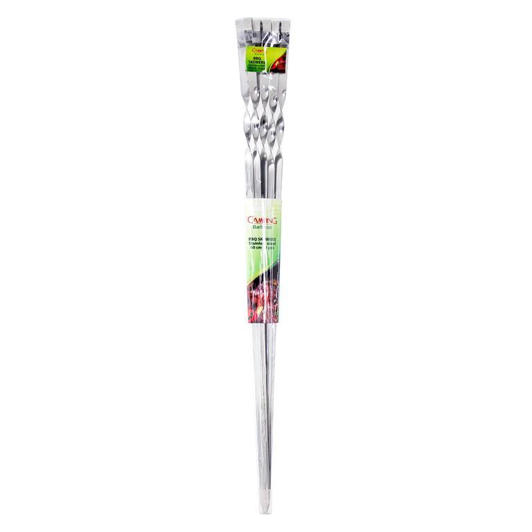 Ploché grilovacie ihlice s očkom - 6 ks. Sada špízových ihlíc s dĺžkou 60 cm, ktorá umožňuje bezpečnú manipuláciu, ochráni Vás pred žiarou a umožní ugrilovať naraz veľké množstvo potravín. Špízové ihly sú ideálne na grilovanie zeleniny a mäsa. Očko uľahčuje otáčanie ihlíc pri grilovaní. Materiál - nerez.