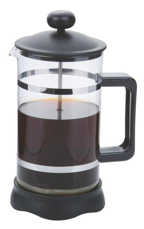 Návod na prípravu. Vyberte viečko s filtrom a sklenenú kanvicu zahrejte vypláchnutím horúcou vodou. Nasypte požadované množstvo čaju či kávy (odporúča sa hrubo namletá, pretože jemná káva by mohla upchať filter). Nalejte do kanvice horúcu vodu (nie vriacu), riadne premiešajte a nechajte niekoľko minút odstáť. Nasaďte viečko s filtrom a mierne stlačte, nie úplne na dno. Nechajte ešte lúhovat. Potom pomaly dotlačujte rukoväťou filter až na dno nádoby. Káva či čaj sú pripravené na servírovanie. Pri nalievaní nikdy neposúvajte filter hore, ale až do vyprázdnenia ponechajte stlačený filter na dne nádoby. Farba - číra, strieborné a čierne doplnky. Rozmery - 10,8 x 22 cm.