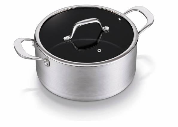 Kastról s pokrievkou Brabantia Technopro 20 cm, s objemom 2,9 l. Dvojvrstvové nepriľnavé vnútro kastróla sa ľahko čistí. Silná plne indukčná základňa zaistí lepšiu distribúciu tepla. Bezpečné nitované rukoväte sú z nerezovej ocele. Vonkajší povrch kastróla je matne šedý. Tento kastról je vhodný pre všetky zdroje tepla, má lisované hliníkové telo, pokrievky s odvzdušňovacím otvorom a elegantný dizajn.