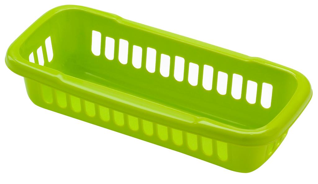 Plastový košíček je univerzálnym pomocníkom v domácnosti. Veľmi pekný, dizajnový a ľahký košík je možné podľa jeho rozmerov využiť na úschovu vecí v domácnosti alebo na ich prenášanie. Košíček je ľahko umývateľný. Rozmery 24 x 11 x 5,5 cm; rôzne farby.