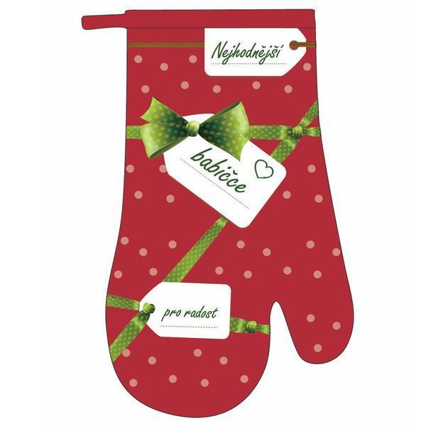 Táto darčeková chňapka v tvar rukavice urobí radosť všetkým babičkám. Chňapka je vhodná na uchopenie a prenášanie horúcich nádob a plechov alebo na zdvíhanie rozpálenej pokrievky. Rozmery 27 x 17 cm. Materiál - povrch: predná strana 100% bavlna, zadná strana 100% polyester, výplň: 65% bavlna, 35% polyester.