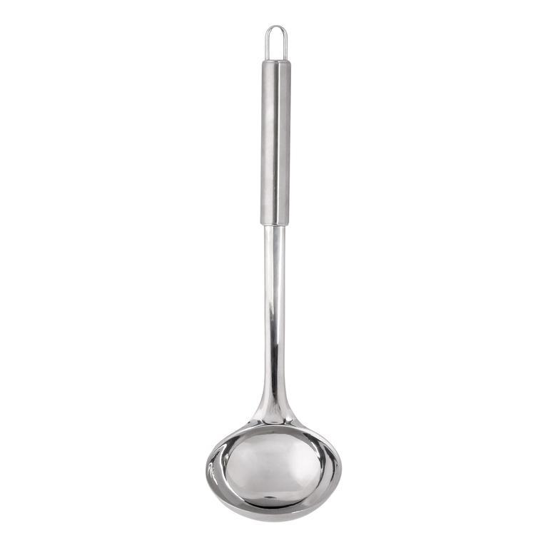Naberačka na polievku 30 cm, vyrobená z lesklej nerezovej ocele, opatrená otvorom na zavesenie, vhodná do umývačky riadu. Rozmery 30 x 8,6 x 7,5 cm. Farba strieborná.