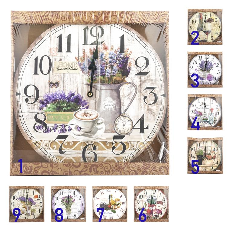 Nástenné hodiny sú krásnym dekoratívnym prvkom pre vašu kuchyňu. Hodiny sú vybavené strojčekovým systémom s plastovými ručičkami. Hodiny je možné zavesiť na stenu. Napájanie na 1 tužkovú batériu. Materiál - drevo, plast. Rozmery hodín - 34,2 x 0,5 cm. Rôzne moderné motívy.