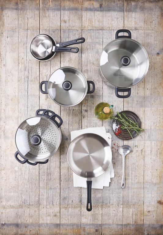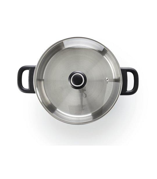 Nerezový kastról so sklenenou pokrievkou BEKA Polo je vhodným pomocníkom do všetkých domácnosti na prípravu Vašich pokrmov. Rýchlo sa zahrieva a udržiava optimálnu distribúciu tepla po celom hrnci, a to vďaka hermetického 3vrstvému sendvičovému dnu. Je vyrobený z odolnej nerezovej ocele 18/10 a v kombinácii s priehľadným skleneným vekom je neoddeliteľnou súčasťou každej domácnosti. Odvzdušňovací otvor vo veku umožní únik pary, zabraňuje prevarovaniu. Vhodné pre všetky varné dosky, vrátane indukcie, priemer hrnca je 28 cm a objem 8,5 l. Kastról je možné umývať v umývačke riadu, ale z dôvodu zachovania dlhšej životnosti použitého materiálu odporúčame šetrnejšie ručné umývanie. Pri príprave jedla používajte len tepelne odolné drevené, silikónové alebo nylonové kuchynské náčinie.