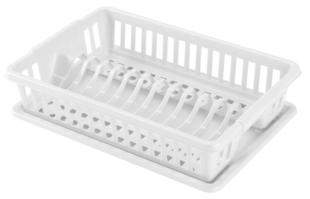 Plastový odkvapkávač s podnosom má dvanásť samostatných priehradiek na zachytenie tanierov. Ľahko sa udržiava a čistí, je vhodný do umývačky riadu. Rozmery 38 x 26 x 9 cm, rôzne farby.
