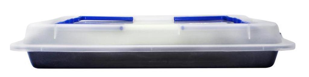 Pekáč Toro s kvalitným nepriľnavým povrchom. Vhodný na prípravu koláčov, cukroviniek, zeleniny i mäsa. Plastový poklop vám upečené dobroty ochráni a vďaka praktickému uchu ich ľahko prenesiete. Plastový poklop sa nesmie dať do vyhriatej rúry. Jednoduchá držba plechu, možné umývať v umývačke riadu. Rozmery pekáča 42 x 29 x 3,8 cm.