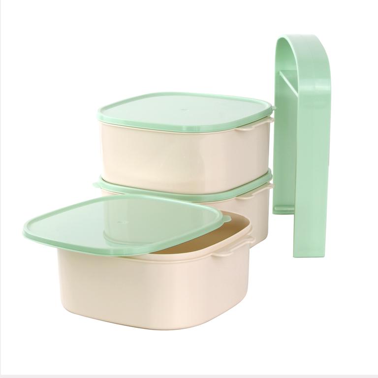 Praktický pomocník na uchovávanie a prenášanie horúcich aj studených pokrmov. Trojposchodový obedár je vyrobený z kvalitného plastu. Objem jednej nádoby je 1,2 l, rôznofarebné viečka.