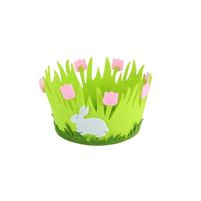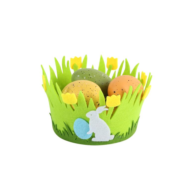 Plstený košík s veľkonočným motívom je vhodný na výzdobu vášho domova počas Veľkej noci. Do košíčka môžete vložiť vajíčka, umelé kuriatka či iné veľkonočné motívy a dekorácie. Rôzne motívy, rozmery 14 x 8 cm.