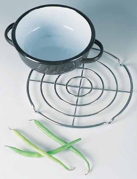 Podložka pod hrniec - okrúhla, na odkladanie hrncov aj kastrólov všetkých veľkostí. Tiež je vhodná na odloženie pri varení či servírovaní. Vyrobená z pochrómovaného kovu. Rozmery podložky - 19,7 x 0,9 cm.