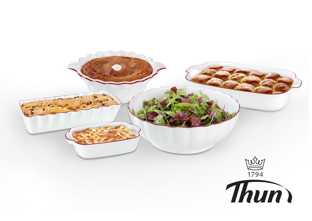 Spoločnosť Thun 1794 a.s. ponúka svojim zákazníkom špeciálne kolekcie zapekacích mís, ktoré sú vhodné pre použitie v mikrovlnných rúrach. Samozrejmosťou je použitie v elektrických alebo plynových rúrach. Nikdy ich však nedávajte na priamy plameň. Misy je možné umývať v umývačkách. Veľká výhoda zapekacích mís spočíva v tom, že pri pečení dochádza k pozvoľnému prevodu tepla na pokrm, a tým lepšiemu prehriatie zapekaného pokrmu. Pri servírovaní jedla si zapekacia misa udržuje naakumulovanú teplotu a pokrm vydrží počas stolovania príjemne teplý. Ďalšou veľkou výhodou je veľmi ľahké odstraňovanie zvyškov po pečenie či zapekanie. Aby Vám tieto výrobky dobre a dlho slúžili, nikdy ich nesmiete dávať horúcej do studenej vody a alebo priamo z chladničky do rozpálenej rúry. Pred prvým použitím umyte v teplej vode a osušte utierkou.