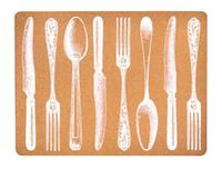 Elegantné prestieranie s dekorom príborov je vhodné na každý jedálenský stôl. Prestieranie "Príbory" je vyrobené z korku. Rozmery 30 x 40 cm. Farba hnedá s bielou alebo červenou potlačou príborov.