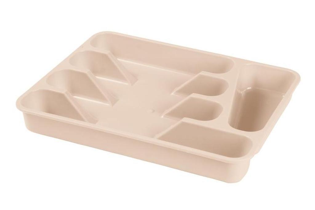 Plastový príborník vhodný do každej domácnosti, s piatimi oddelenými priehradkami pre všetky druhy príborov a drobného kuchynského náradia. Jednoduchá údržba, vhodný do umývačky riadu. Rozmery - 33,5 x 26,5 x 4,2 cm. Farba: krémová.