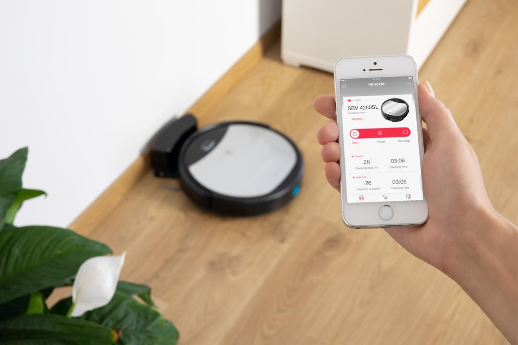 Vlastnosti: - robotický vysávač na čistenie kobercov, plávajúcich podláh, parkiet,, linolea, dlaždíc. Infračervený protinárazový čelný senzor. Veľmi tichý chod - vhodný i pre domáce zvieratá. BLCD motor s dlhou životnosťou. Nárazníkový senzor pre detekciu prekážok, senzor schodov pre pohodlné používanie v poschodových domoch, senzor pre presnú navigáciu a automatický návrat do nabíjacej stanice. Systém dvoch rotačných kefiek a centrálneho vysávača. Funkcia mopu vďaka nádobe na vodu a vytieracej handre. Prietok vody je riadený elektrickou pumpou. Kombinuje 4 programy na čistenie povrchu - Along the Wall (pohyb pozdĺž steny), Spot (bodové čistenie rozlohy 2 m2), Random (pohyb náhodným smerom), Linear (cik-cak) Variabilné nastavenie časovača - automatické zahájenie upratovania v určitý deň a čas. Diaľkové ovládanie pomocou samostatného ovládača alebo WiFi aplikácie v mobilnom telefóne. Nabíjateľná stanica s fixáciou na stene alebo nábytku. Automatický návrat do stanice po ukončení programu alebo v prípade slabej batérie. Prekoná prah vo výške 1,5 cm. Automatické vypnutie v prípade zablokovania koliečok. Automatický servisný monitoring so zobrazením varovného hlásenia na displeji diaľkového ovládača. Svetelná kontrolka stavu na tele vysávača - pohotovostný režim, nabíjanie, plné nabitie. 2 nádoby na prach - nádoba na suché vysávanie s objemom 475 ml, nádoba na vytieranie 240 ml a 230 ml nádoba na vodu.