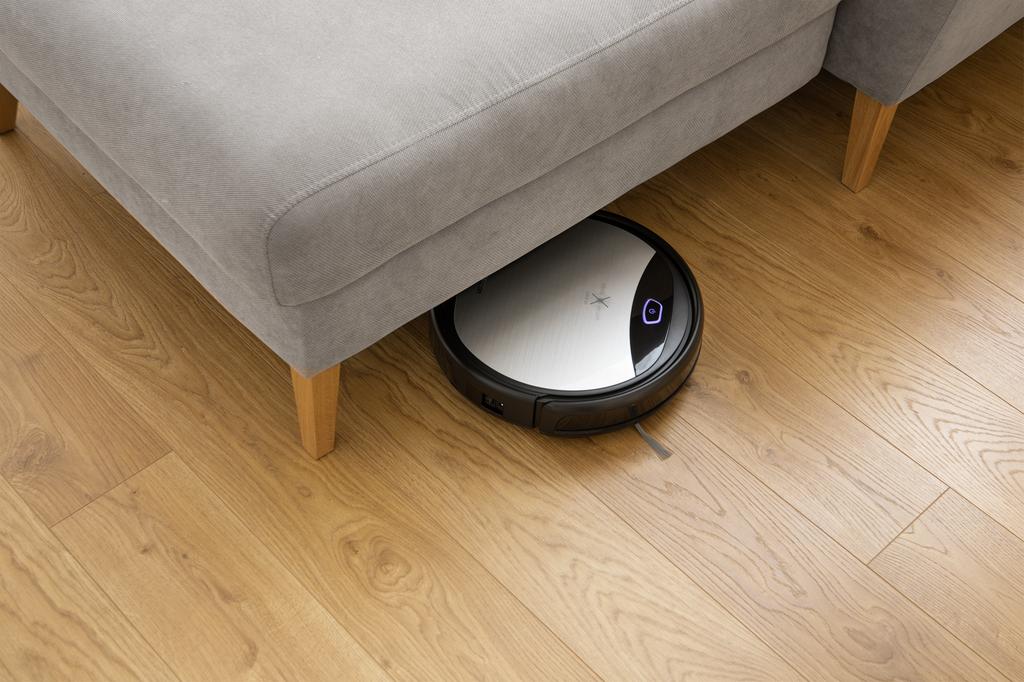 Systém dvoch rotačných kief a centrálneho vysávača je ideálny na vysávanie kobercov i tvrdých podláh. Bočné rotačné kefy si poradia s každým rohom. Vysávač je vybavený li-lon batériou, ktorá poskytuje energiu až na 120 minút prevádzky. Nabíjateľnú stanicu môžete upevniť na stenu alebo nábytok a vysávač ju automaticky vyhľadá v prípade ukončenia programu alebo slabej batérie. Možnosť mopovania dovedie upratovanie k dokonalosti. Súčasťou balenia je handra na umývanie a nádoba na vodu.