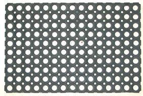Hladká gumová rohožka. Praktická rohožka pred dvere na čistenie obuvi. Stabilná gumová rohožka s okrúhlymi otvormi sa pri čistení obuvi nešmýka po podlahe. Jednoduché čistenie. Čierna farba. Rozmery rohožky 40 x 60 cm.