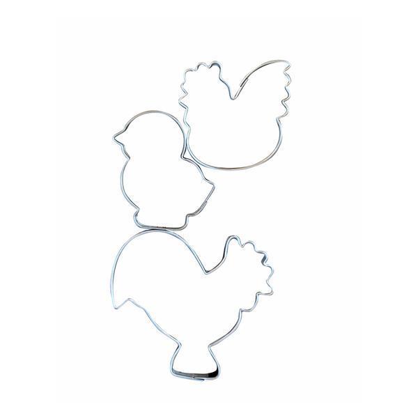 Veľkonočná sada formičiek. Vykrajovače sú vyrobené z pocínovaného plechu. Vhodné na cukrovinky, medovníčky, poťahové alebo modelovacie hmoty. Vykrajovače sú od českého výrobcu a spĺňajú všetky predpísané normy. Sada obsahuje 3 ks: kohútik, sliepočka, kuriatko.