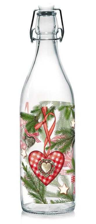 Sklenená fľaša s patentným uzáverom TORO 1l vianočný dekor