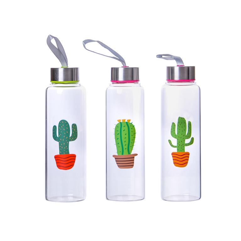 Sklenená fľaša s viečkom TORO 390ml Kaktus MIX motívov