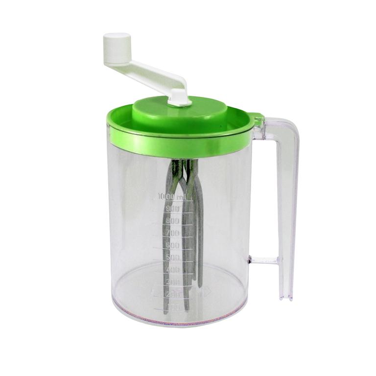 Ručný šľahač vhodný na vyšľahanie rôznych potravín, napr, cesta, smotany a pod. Je ľahko použiteľný bez elektriny. Rukoväť padne krásne do ruky a umožňuje ľahké uchopenie šľahača. Materiál - kov, plast. Objem šľahača je 1 l. Rozmery 11,5 x 15,5 cm, farebné prevedenie: biela, modrá, zelená.