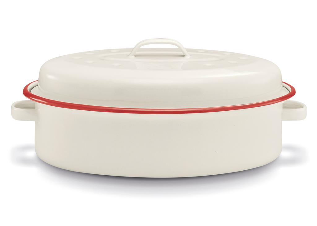 Smaltovaný pekáč s pokrievkou KITCHEN FUN o veľkosti 34 cm. Rovnomerná tepelná vodivosť a optimálny cirkulácie pary v pekáči zaistí, že si vaše pokrmy udrží všetky chute a vône. Využijete ho pri pečení mäsa, buchiet, aj najrôznejších zapekaných dobrôt. V béžovo-červenom pekáči môžete piecť až do 250 ° C.