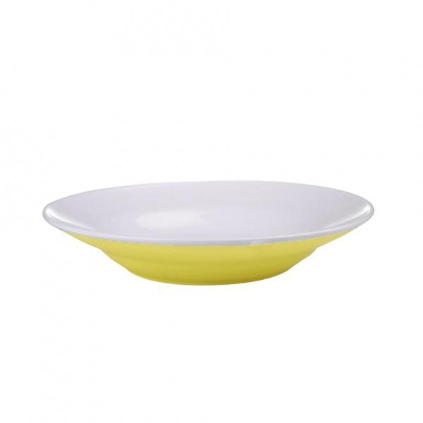 Porcelánový polievkový tanier s matne farebnou spodnou časťou. Vhodný do mikrovlnnej rúry aj do umývačky riadu. Materiál - porcelán. Farba - biela, žltý mat. Rozmery taniera - 20,5 x 20,5 x 3,5 cm.