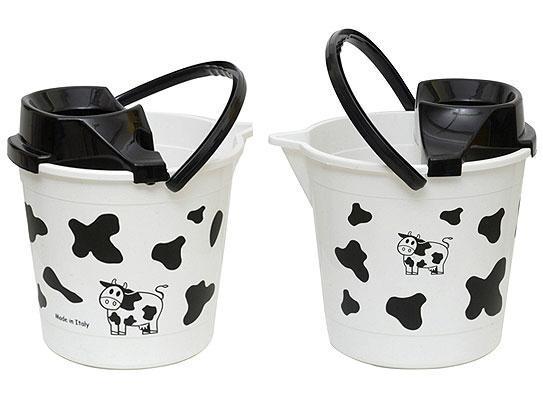 Vedro okrúhle 12 l so žmýkadlom na žmýkanie textilných mopov. Vedro je potlačené vzorom "krava".