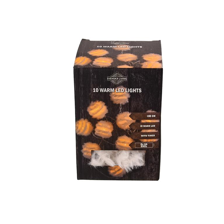 Vianočná svetelná reťaz 10 LED gule pierka s časovačom