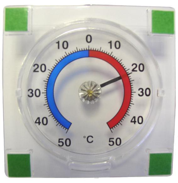 Mechanický vonkajší teplomer s praktickou samolepkou na nalepenie, môžete ho prilepiť, kam len potrebujete. Teplomer je základná pomôcka na kontrolu vonkajšej teploty. Teplomer má stupnicu od - 50 do + 50 °C. Vyrobený z umelej hmoty v transparentnom prevedení. Materiál plast. Rozmery 7,6 x 7,6 x 1,4 cm.