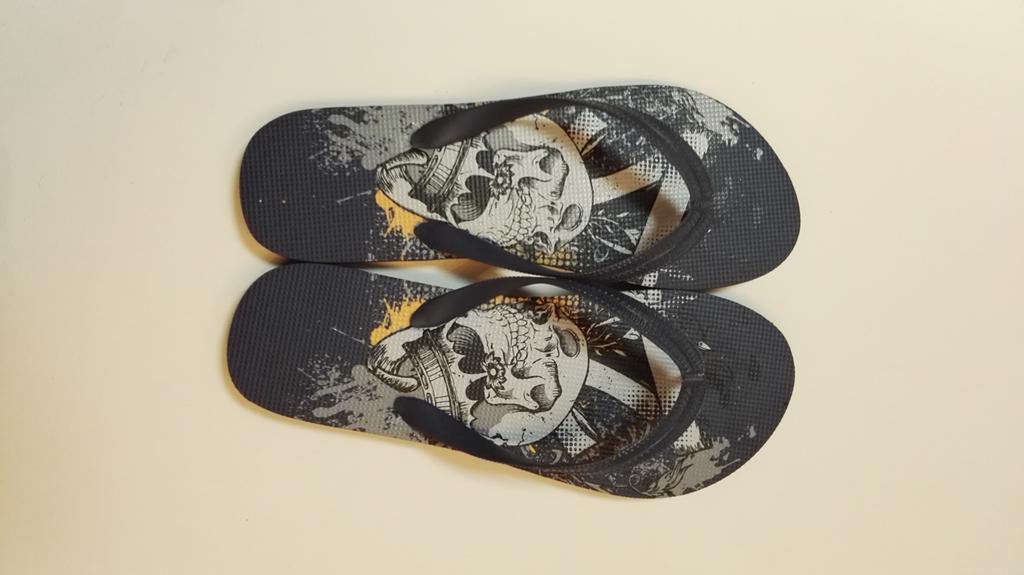Pánske žabky s rôznymi motívmi. Žabky sú pohodlná obuv pre horúce letné dni, k vode, ale aj na bežné nosenie. Veľkosť EU 43. Dĺžka 28,7 cm. Assort farieb a motívov.