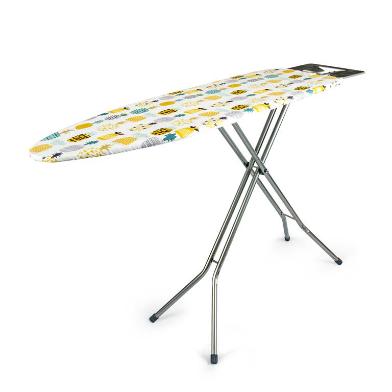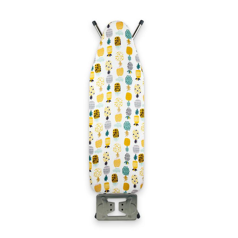 Žehliaca doska Toro Basic. Skladná a ľahko prenosná žehliaca doska s plochou na žehlenie, paropriepustnou žehliacou doskou, odkladacou plochou na žehličku. Doska je výškovo nastaviteľná. Nosnosť dosky v strednej časti je do 20 kg a do 5 kg po bokoch. Assort farieb a dekorov. V poznámke, prosím, špecifikujte farebné prevedenie. Materiál - kov, bavlna. Nastaviteľnosť výšky 61 - 89,5 cm. Rozmery žehliacej plochy 120 x 38 cm.
